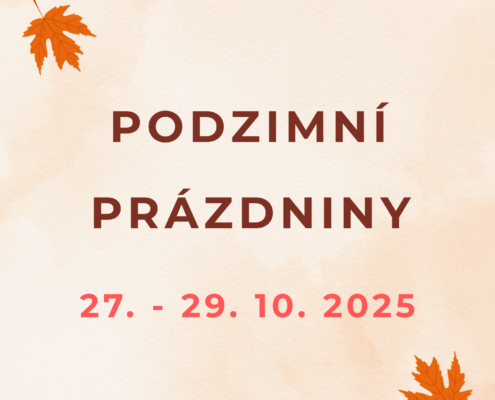 27.10.2025 – Podzimní prázdniny – DM uzavřen 28.10.2025 – Státní svátek – DM uzavřen 29.10.2025 – Podzimní prázdniny – Příjezdy do DM od 18 hodin  30.10.2025 – Příjezdy do DM 6.00 – 8.00 hodin, dále běžný…