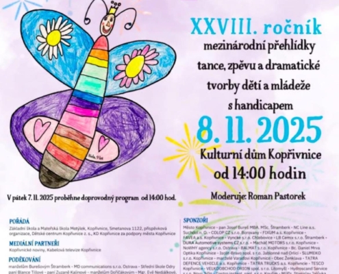 V sobotu 8.11.2025 se žáci naší školy zúčastní 28. ročníku mezinárodní přehlídky tance, zpěvu a dramatické tvorby dětí a mládeže s handicapem v Kulturním domě v Kopřivnici.