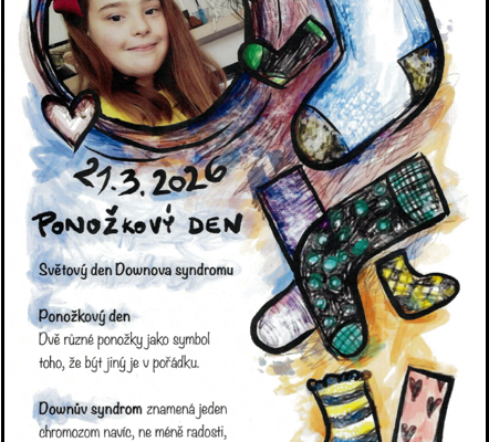 Na sobotu 21.3. připadá Světový den Downova syndromu. Prosíme všechny, aby si v pátek 20.3. vzali na každou nožku jinou ponožku a vyjádřili tím podporu pro lidi s Downovým syndromem.