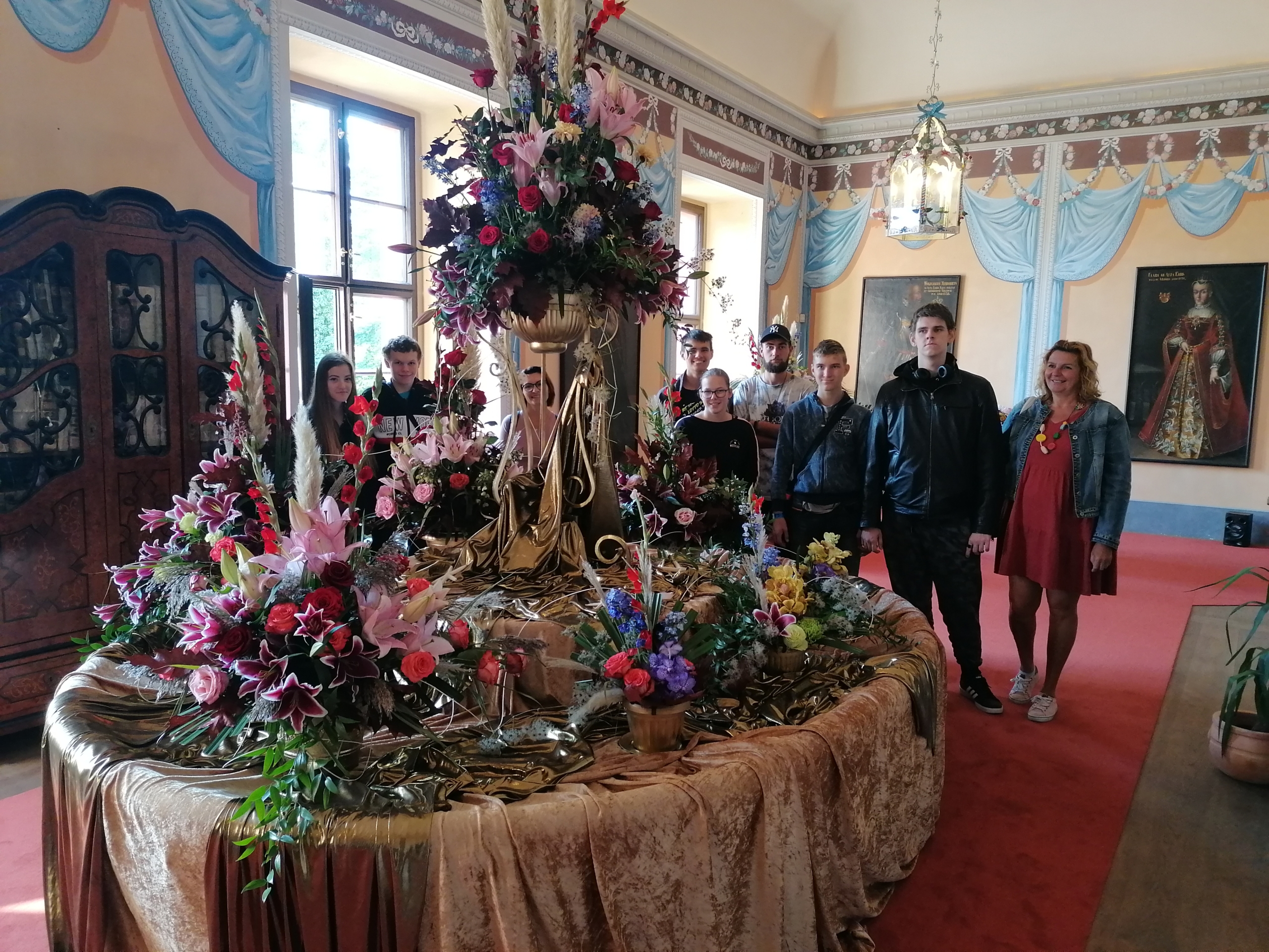 2. 10. 2023 jsme se s žáky prvního a třetího ročníku oboru Zahradnické práce jeli podívat do zámku Kunín, kde se každoročně pořádá floristická výstava „Růže pro paní hraběnku“, na počest hraběnky, která v tomto zámku žila. Výstavu připravuje zkušený florista ve spolupráci s žáky Zahradnické školy v Ostravě. Květinové vazby jsou rozmístěné ve výstavních prostorách zámku. Během prohlídky jsme si povídali o květinách, které byly do vazeb použity.