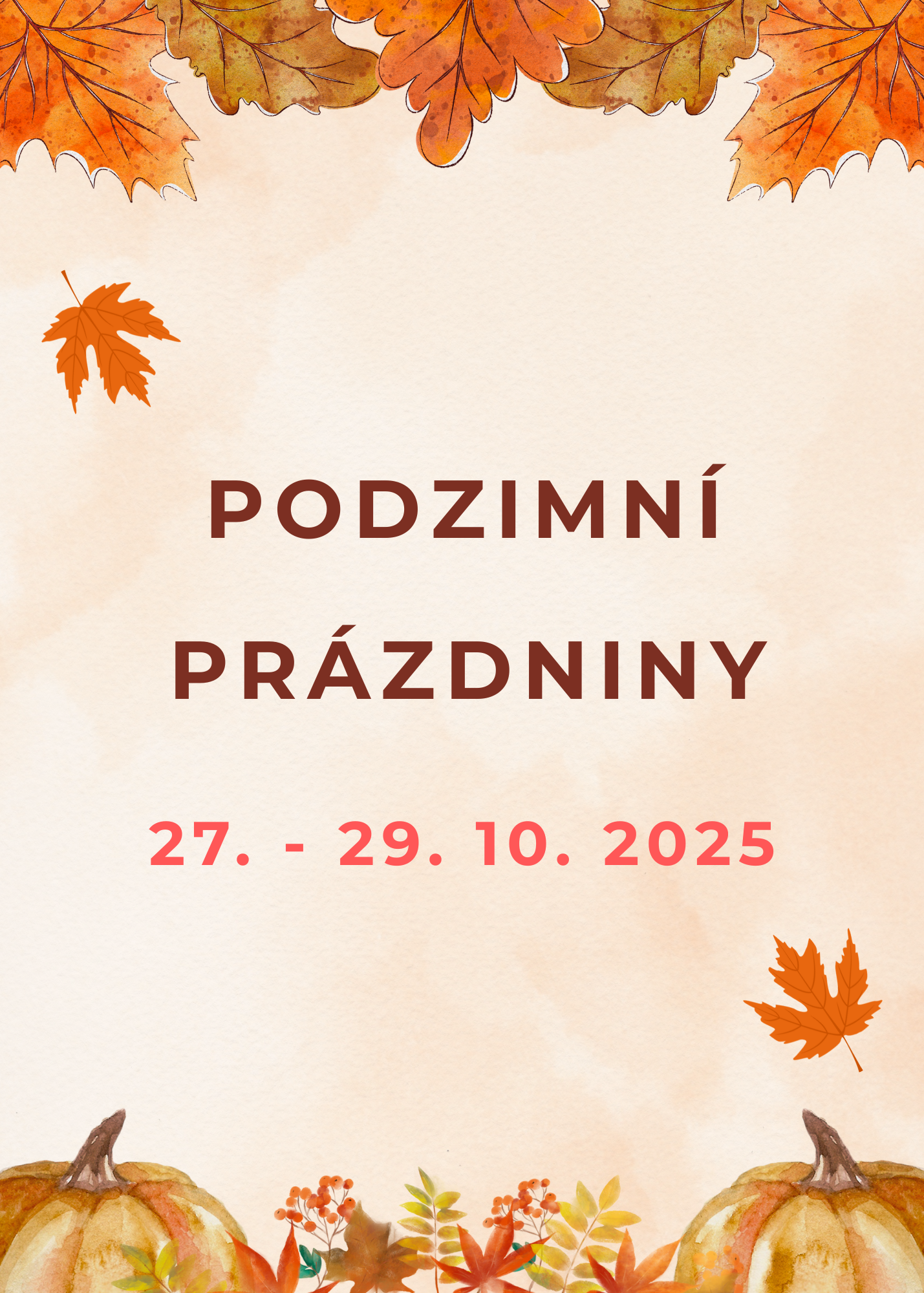 Ve dnech 27. 10. – 29. 10.  2025 mají žáci podzimní prázdniny.