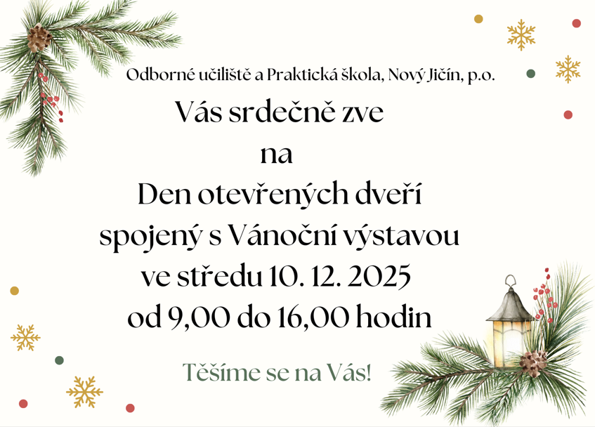 Ve středu 10.12.2025 se koná od 9,00 do 16,00 hodin Den otevřených dveří spojený s Vánoční výstavou.