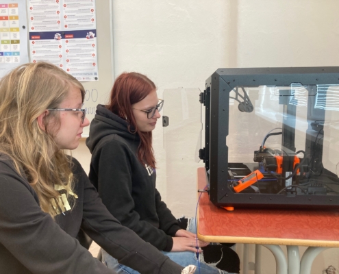 Tiskárna je zároveň využívána i při tvorbě předmětů pro prezentaci školy. Výsledky práce tak nezůstávají jen ve třídě, ale mají i širší využití 👍