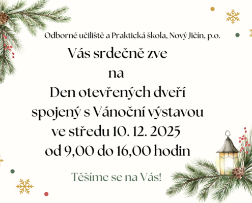 AktualityVe středu 10.12.2025 se koná na naší škole Den otevřených dveří spojený s Vánoční výstavou od 9,00 do 16,00 hodin.